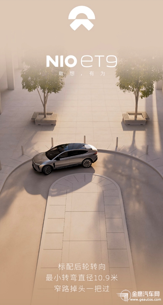 12月23日,2023蔚来日(NIO Day 2023)在西安举行。蔚来全新智能电动行政旗舰ET9正式亮相并开启预订。  智能电动汽车已经成为全球科技创新的制高点,蔚来围绕智能电动汽车的核心技术进行全栈布局和坚决投入,蔚来ET9汇聚最新技术研发成果,以技术旗舰定义智能时代行政旗舰,“敢想,有为”,是一款专为新一代高端商务用户打造,“最得体、最舒适、最安全”的智能电动行政旗舰。  为创新引领者打造的智能电动行政旗舰 蔚来ET9重塑智能电动时代行政旗舰新形态,车长5325毫米、宽2016毫米、高1620毫米、轴距3250毫米,超大体量带来极强的旗舰姿态和气场。采用创新的飞航车身设计,可同时满足用户对于座舱空间、舒适性以及安心感、掌控感的要求。23寸铝合金锻造高光拼色轮毂,采用自正式悬浮轮标设计,搭配790mm同级最大轮胎直径,气场强大。远超同级行政旗舰的200mm离地间隙,姿态更挺拔、视野更开阔,带来安心、从容的旗舰驾乘感受。  蔚来ET9标志性的瞭望塔式传感器布局继续引领时代特征,激光雷达、前视摄像头置于车顶,同时新增双侧广角激光雷达,通过两侧金属翼子板集成,增强侧向感知。首次搭载4D毫米波成像雷达,依靠极佳的穿透力,大大增加前向感知能力。 ET9创造了一个前所未有的移动行政空间,一个高效的移动办公室,一个专属的商务会客厅。
