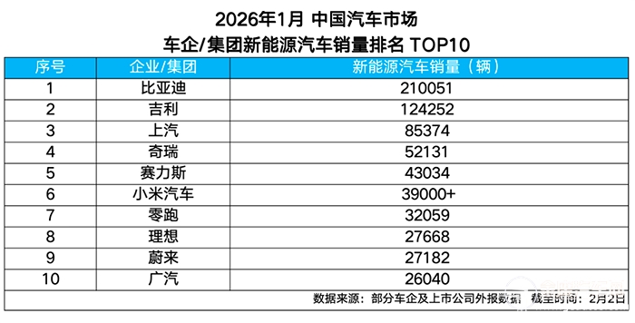 2026年1月新能源汽车销量冠军揭晓,比亚迪继续领跑