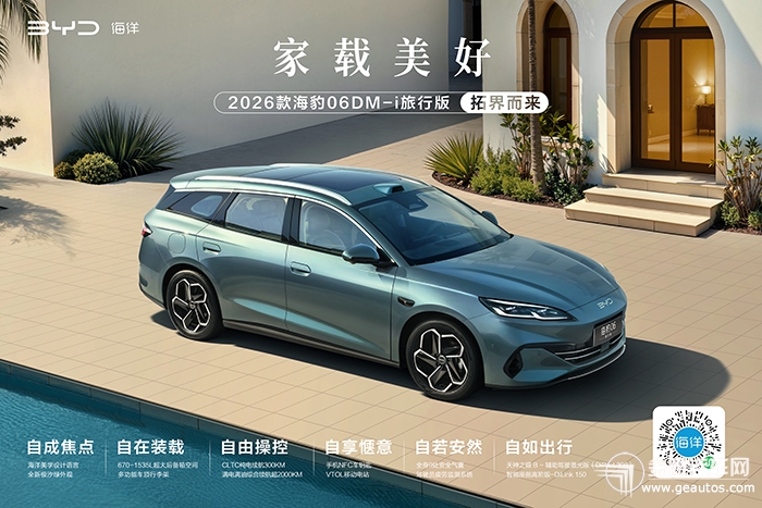 海豹06 DM-i旅行版:全家出游的“全球精品超混旅行车” 专为热爱自驾与注重空间的家庭用户打造,海豹06 DM-i旅行版将实用性与经济性完美融合。其纯电续航直接提升至300km,亏电油耗低至3.15L,可油可电无惧长途。车身尺寸带来的670L超大后备箱(可拓展至1550L),轻松装下全家的露营装备。更值得称道的是其新增的宝宝模式、洗车模式、小憩模式及露营模式,配合6kW超大功率外放电,将车的功能性发挥到了极致,堪称移动的生活家。